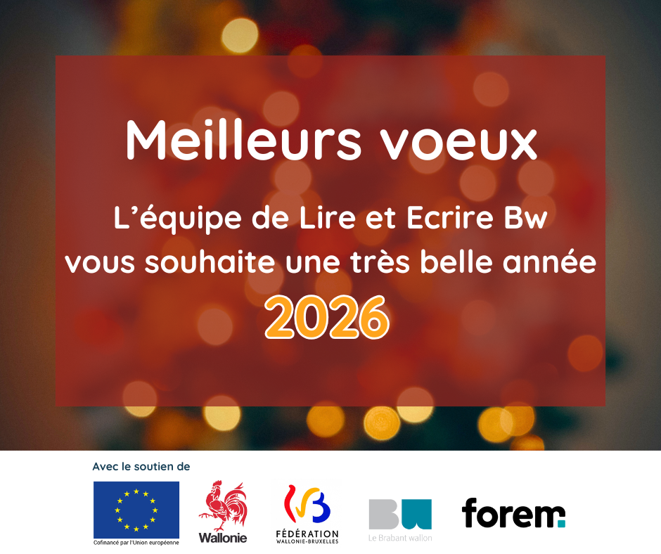 L’équipe de Lire et Écrire Brabant wallon vous souhaite à toutes et à tous une très belle année 2026 ! 🎄✨